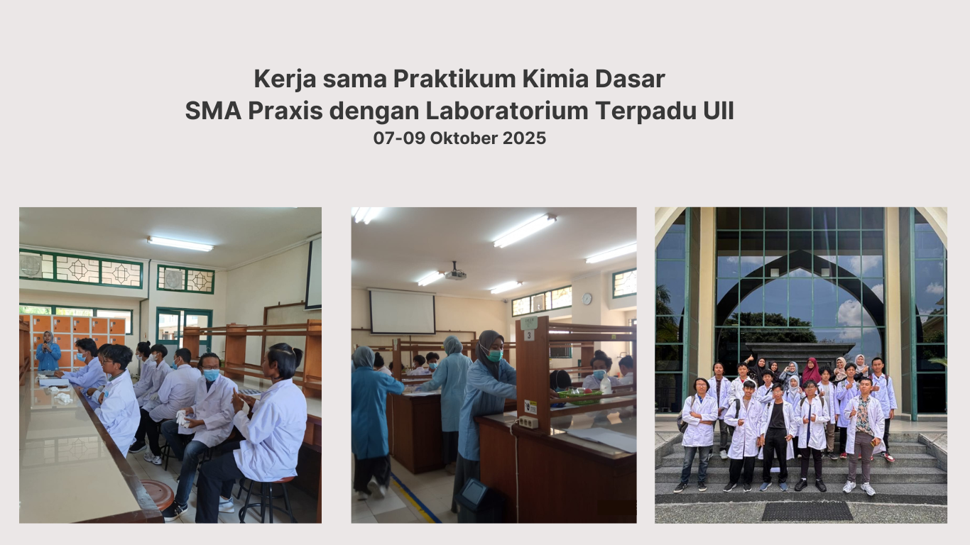 “Kami senang dapat bekerja sama dengan SMA PRAXIS. Kegiatan ini menjadi bagian dari komitmen Laboratorium Terpadu UII untuk mendukung pembelajaran sains di sekolah,” ujar Kepala Laboratorium Kimia Dasar.